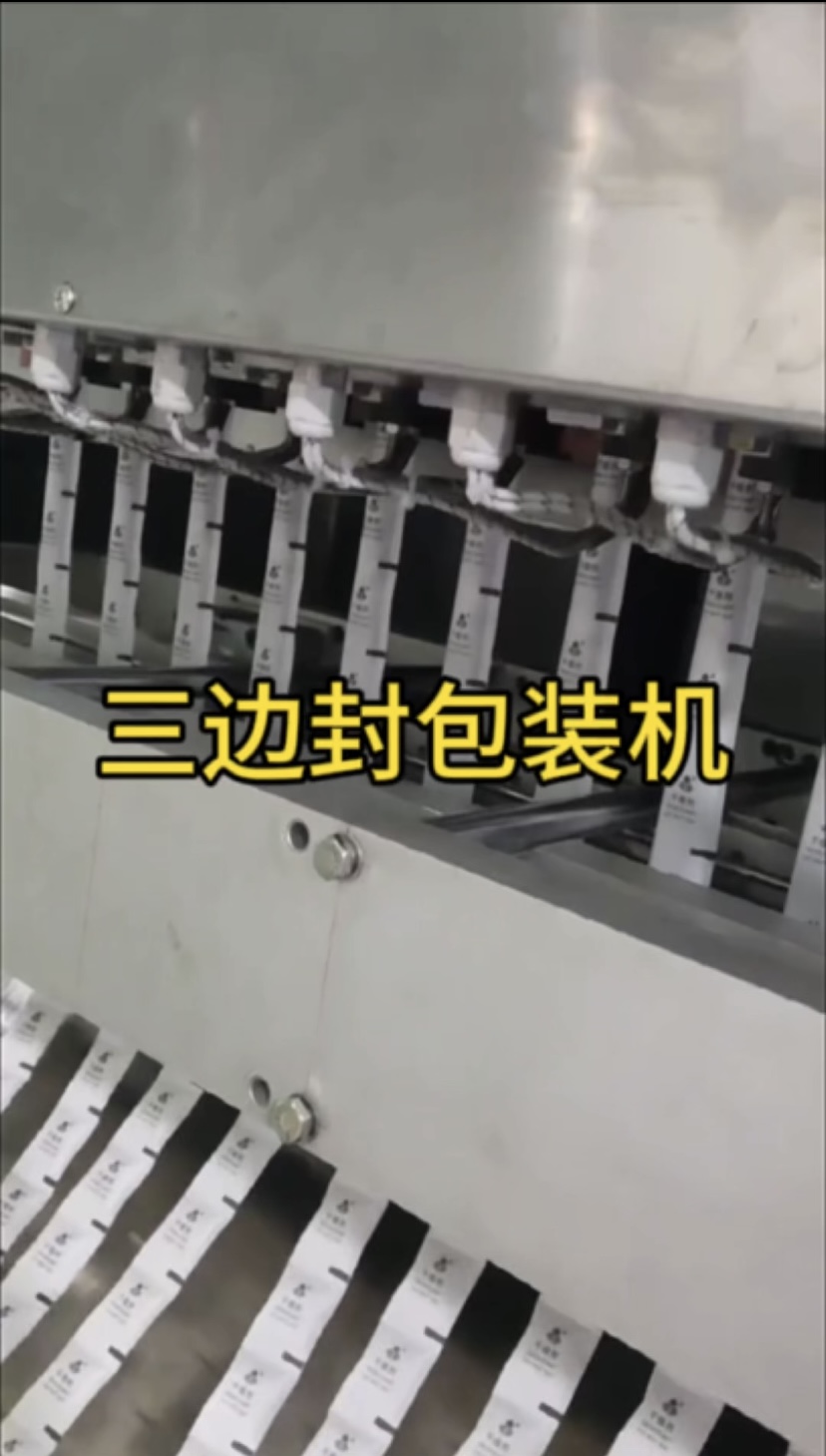 三边封包装机是一种将产品送入包装膜内,将包装膜的三个边缘通过封合形成一定规格包装袋,并完成切断、计量、打码等作业的包装机。